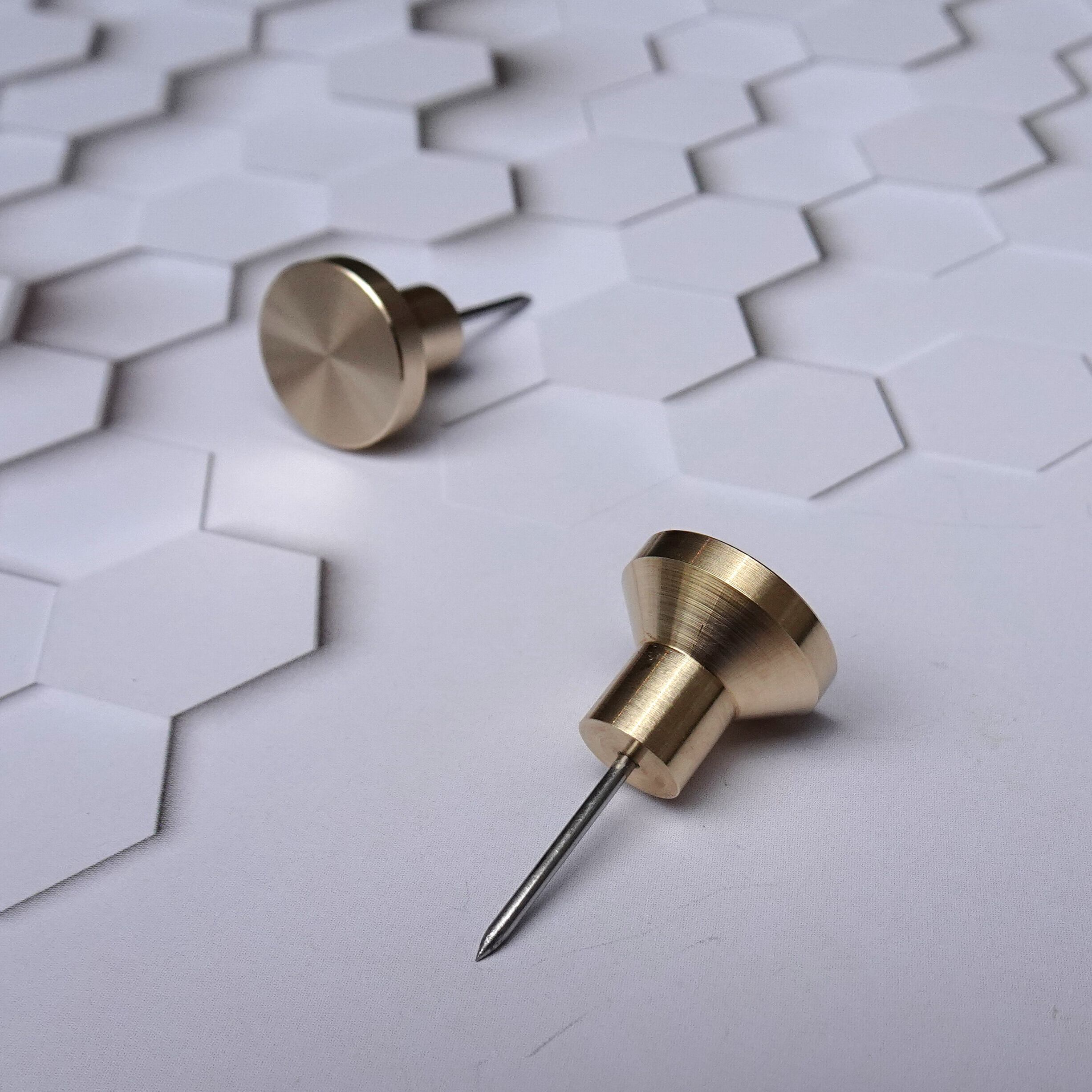 壁からフックを取り外した時の穴跡が小さくなるように、ピン部分はより硬質なステンレスを用いてできるだけ細くしました。